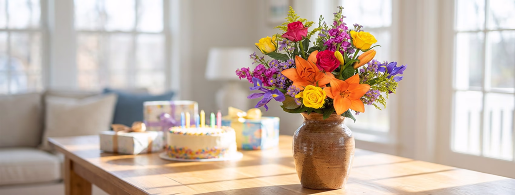 To keep your birthday bouquet looking its best: trim stems at an angle, change the water every 2-3 days, remove any wilting leaves or petals, place the arrangement away from direct sunlight and heat sources, and use any flower food provided. These steps can extend the display life.