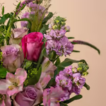 Indulge in the splendour and grace of the Amethyst Cloud luxury bouquet. Let its mesmerizing beauty and gentle fragrance transport you to a world of serenity and enchantment. Elevate any space with the ethereal elegance of the Amethyst Cloud bouquet and experience the magic it brings. Delivered artistically arranged for added wow-factor, your product will arrive in an eco-friendly gel-bag to ensure freshness. Wash off the gel and cut 3cm off the stem before arranging in your chosen vase.