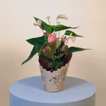 Introducing the Pink Anthurium — a striking botanical wonder that mesmerizes with its unique blend of vibrant hues and captivating form. With its lush green waxy leaves and delicate pink petals, this Anthurium radiates a sense of natural beauty and elegance. Housed in a rustic brown paper pot, the Pink Anthurium stands as a symbol of botanical artistry and sophistication. Its glossy foliage and graceful blooms create a stunning visual display that adds a touch of tropical allure to any space. The Pink Anthurium is more than just a plant; it's a living masterpiece that breathes life and vibrancy into its surroundings.